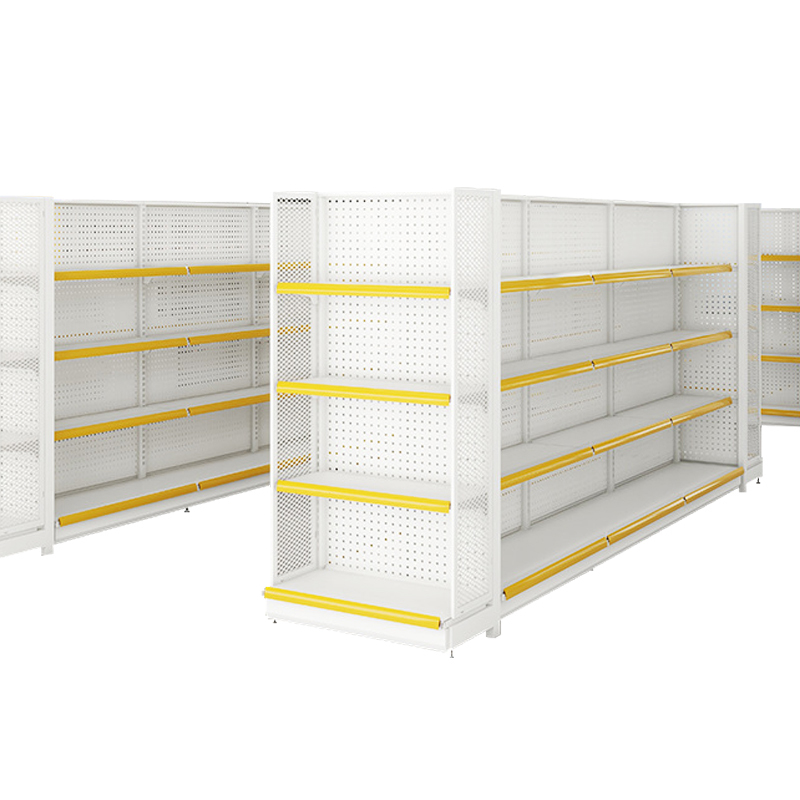 Moderno scaffale per display in metallo per negozi al dettaglio e supermercati con colori e dimensioni personalizzabili.